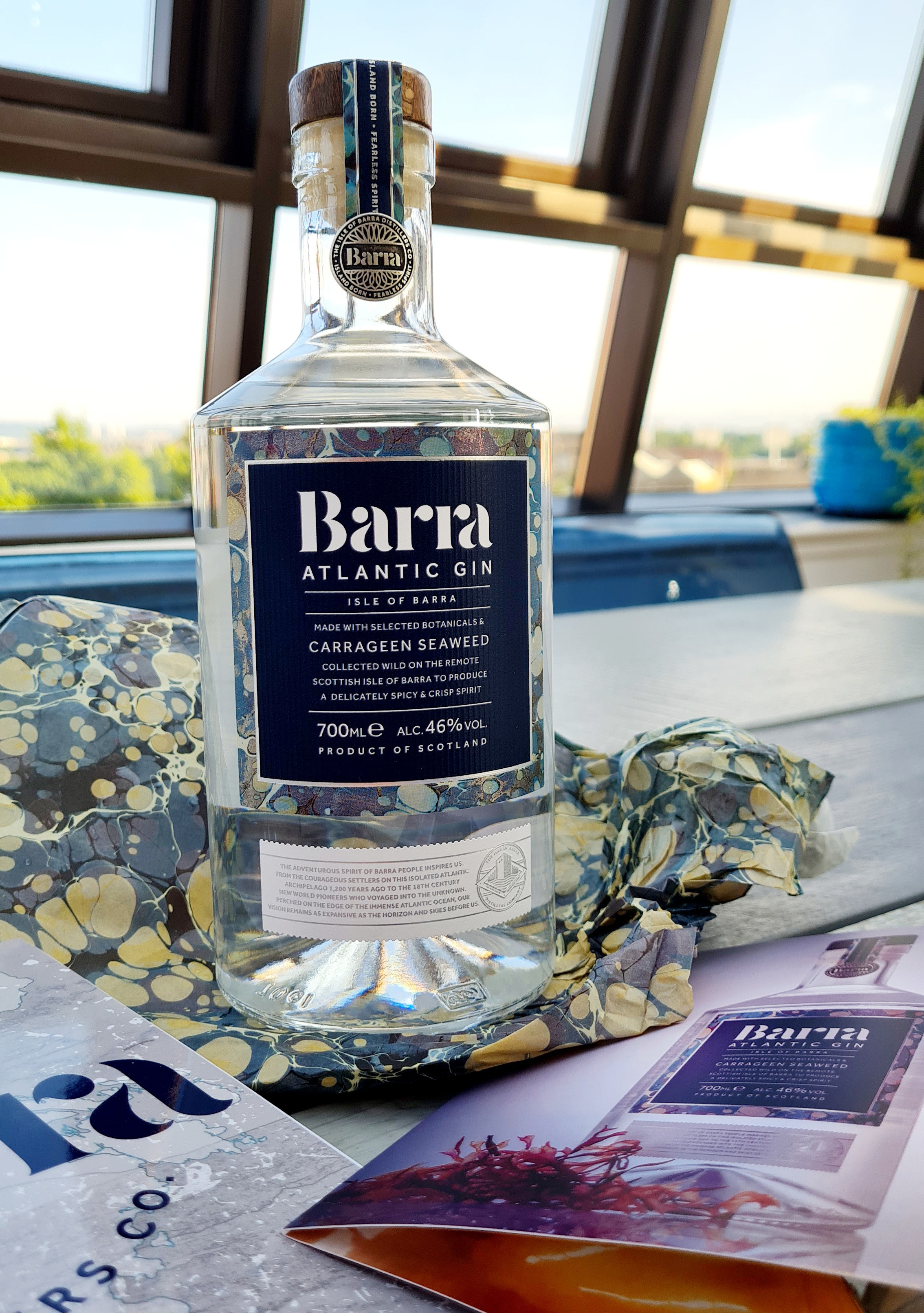 The bottle of Barra Atlantic Gin comes in a beautiful wrapping that matches the design on the label, evoking images of the island, and the taste of the gin is truly delightful!