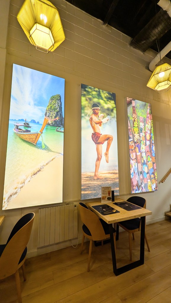 From the moment we stepped through the doors at 317 Kilmarnock Road, it was clear we were in for something special. The restaurant has a bright, contemporary interior that manages to feel both modern and warmly inviting. Tasteful nods to Thai culture are dotted around the space — nothing over the top, just enough to make you smile and feel that instant holiday vibe.